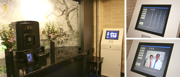 タッチモニター端末が故人を偲ぶお手伝いをしています。