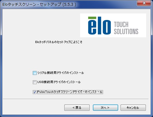 「APRタッチスクリーンドライバのインストール」ボックスにチェックをし、 [次へ]ボタンをクリックしてください。