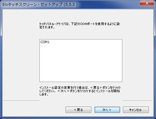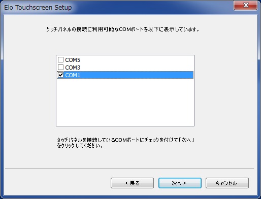 (例はCOMポートが3つあるコンピュータのCOM1にタッチモニタのシリアルケーブルが取り付けられている場合です。)