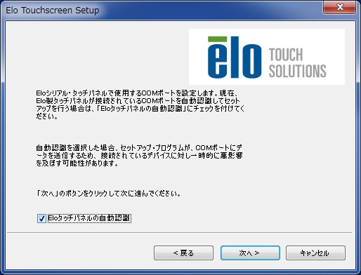 前のスクリーンで「Eloタッチパネルの自動認識」ボックスにチェックをした場合、