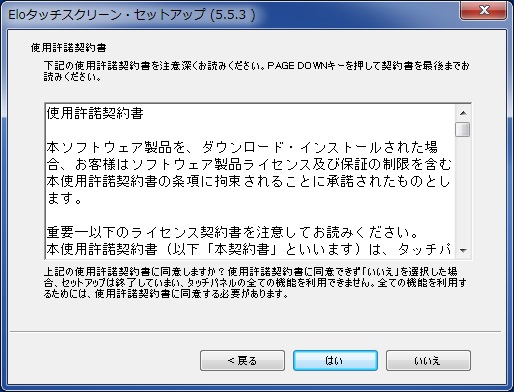使用許諾契約書に同意頂けない場合は[いいえ]ボタンをクリックし、ドライバのセットアップを直ちに終了してください。