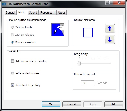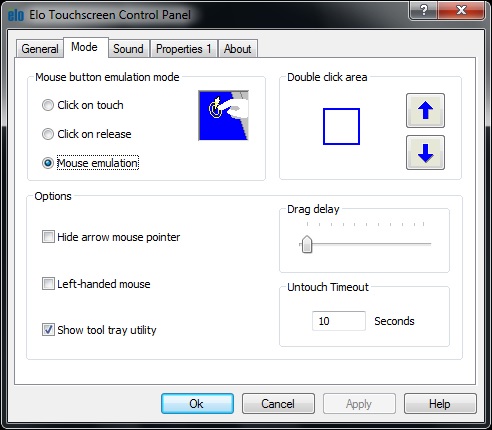 The Mode options are the same for PulseTouch as noted above, with the exception of Click on Release, which is not supported for those type of touch screens.