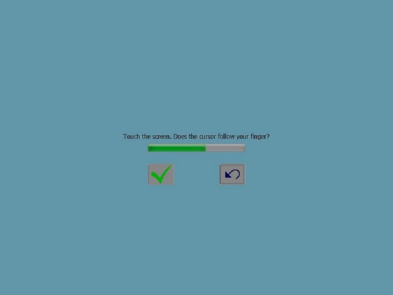 You will then be asked to touch various points on the screen to verify that the cursor appears at the position touched. If the cursor appears at the position touched, click the green arrow to accept and exit out of the calibration program. If the cursor does not appear at the position touched, click the blue curved arrow and the calibration program will run again.