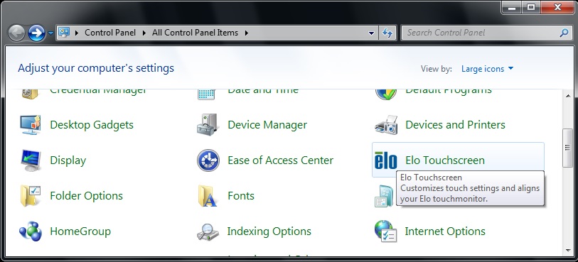After the driver is installed, an "Elo Touchscreen" icon will appear in the Windows Control Panel and in the list of installed programs on the computer.