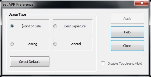 10. PulseTouch usage type can be modified by clicking on the Set PulseTouch Preferences button in the Elo Properties tab. After selecting Usage Type, click Apply to apply the changes made.