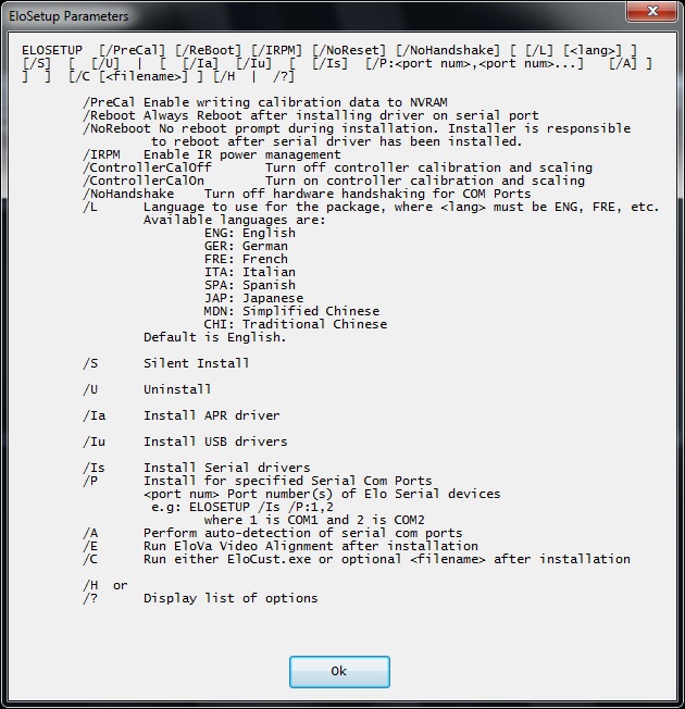 The EloSetup program for this driver may be run as an attended or unattended program from a command line, batch file, etc. Silent Install is considered unattended mode because no user interaction is required. Attended mode requires user interaction during the installation process. Silent install is launched from the DOS prompt line