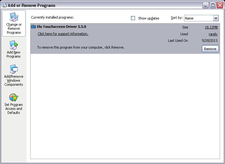 3. Select the Elo Touchscreen driver open, then select Remove (Windows XP) or Uninstall (Windows 7 & 8). Elo Uninstaller will launch and proceed with removal of drivers from the computer.