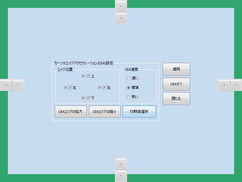 初期値選択ボタンを押すとカーソルエッジアクセラレーションエリアが緑色で表示されます。