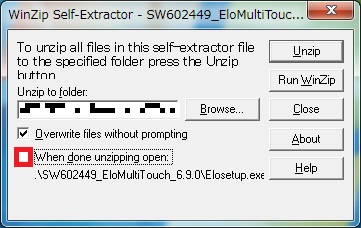 - 自己展開ファイル「SW602660_EloMultiTouch_6.9.23.exe」を実行してください。