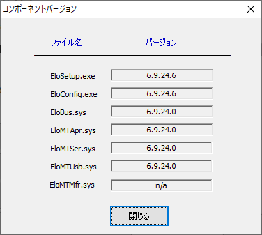 情報は、本ドライバーのバージョン情報とドライバーが使用しているコンポーネントバージョンを表示します。 シリアル接続の場合はインストールされるコンポーネントが追加されます。