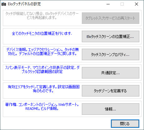 PC起動後にタッチパネルを接続した場合等でタッチが動作しない場合にサービスを再起動します。
