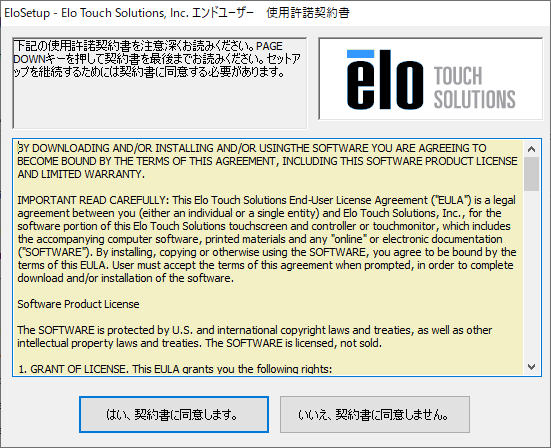 使用許諾契約書に同意頂けない場合は[いいえ、契約書に同意しません]ボタンをクリックし、ドライバのセットアップを直ちに終了してください。