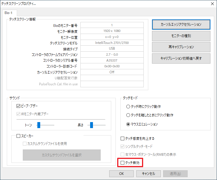 本ドライバーをインストールしてもタッチ動作できない場合は次の点を確認してください。