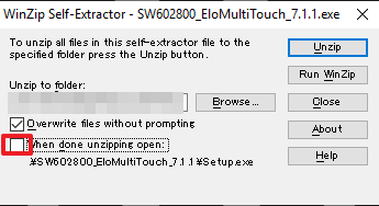 - 自己展開ファイル「SW602800_EloMultiTouch_7.1.1.exe」を実行してください。