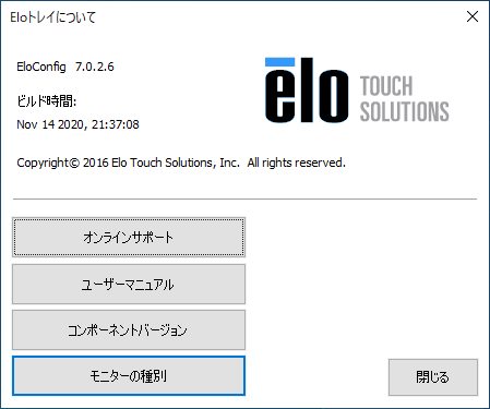 情報は、本ドライバーのバージョン情報とドライバーが使用しているコンポーネントバージョンを表示します。 シリアル接続の場合はインストールされるコンポーネントが追加されます。