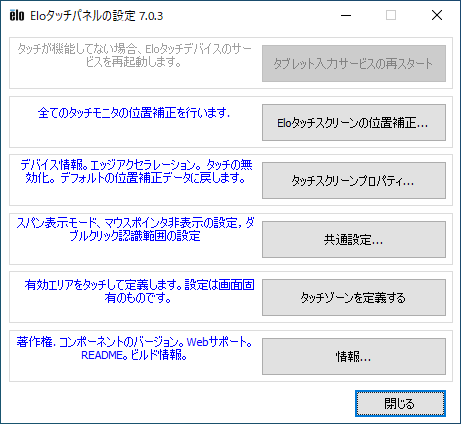 PC起動後にタッチパネルを接続した場合等でタッチが動作しない場合にサービスを再起動します。