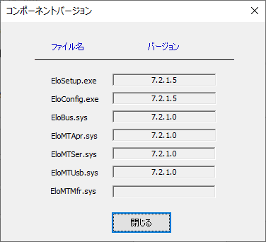 情報は、本ドライバーのバージョン情報とドライバーが使用しているコンポーネントバージョンを表示します。 シリアル接続の場合はインストールされるコンポーネントが追加されます。