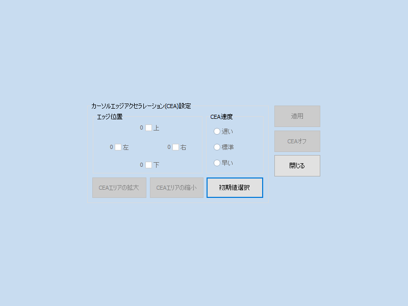 CEAオフを選択すると設定したカーソルエッジアクセラレーションエリアがキャンセルされます。
