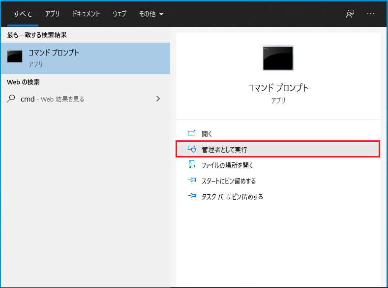 先ほど展開したフォルダに移動してセットアッププログラム(Setup.exe)を次のパラメータを付加して実行します。