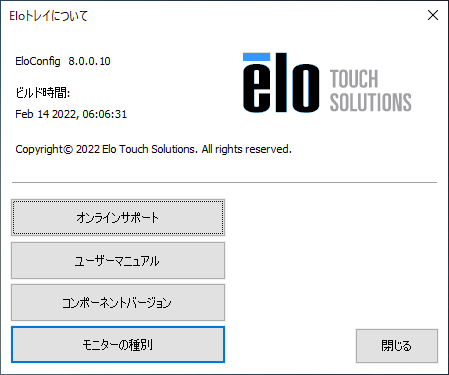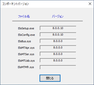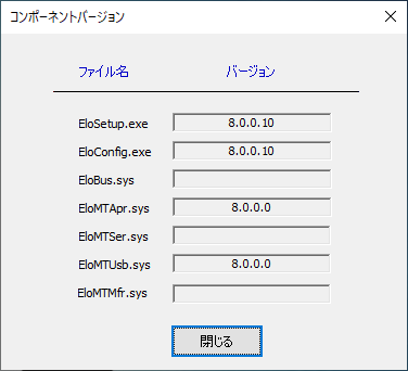 情報は、本ドライバーのバージョン情報とドライバーが使用しているコンポーネントバージョンを表示します。 シリアル接続の場合はインストールされるコンポーネントが追加されます。
