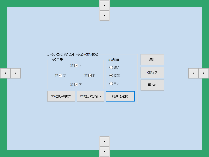 初期値選択ボタンを押すとカーソルエッジアクセラレーションエリアが緑色で表示されます。