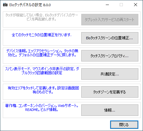 PC起動後にタッチパネルを接続した場合等でタッチが動作しない場合にサービスを再起動します。