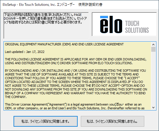 使用許諾契約書に同意頂けない場合は[私は、ライセンス契約に同意しません。]ボタンをクリックし、ドライバのセットアップを直ちに終了してください。