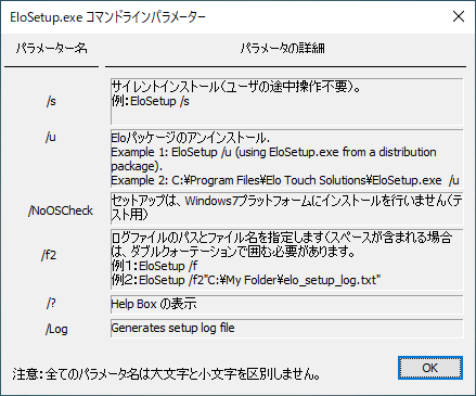 セットアップ・プログラムで使用できる全てのパラメータを閲覧するにはSetup.exe /?として、実行してください。