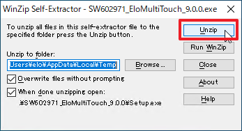1. 自己展開ファイル「SW602971_EloMultiTouch_9.0.0.exe」を実行してください。