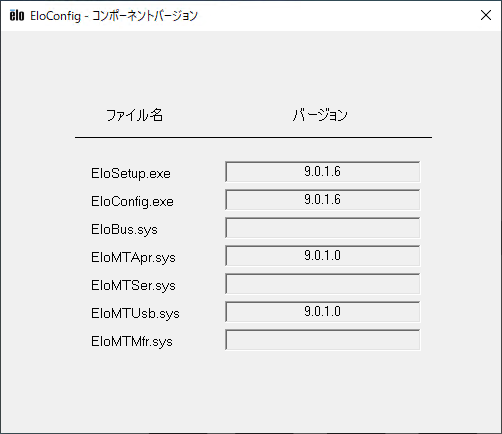 「EloBus.sys」,「EloMTSer.sys」のバージョンは、シリアル接続用のドライバがインストールされている場合に表示されます。