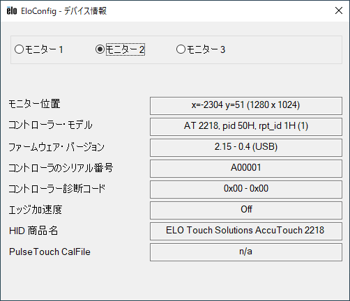 - 接続されているタッチスクリーン・コントローラの情報を表示します。