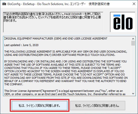 使用許諾契約書に同意頂けない場合は[私は、ライセンス契約に同意しません。]ボタンをクリックし、ドライバのセットアップを直ちに終了してください。