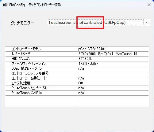 - コントローラーのシリアル番号には、タッチパネル・コントローラーのシリアル番号情報が表示されます。