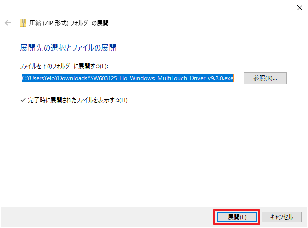 自己展開ファイル「SW603125_Elo_Windows_MultiTouch_Driver_v9.2.0.exe」を展開します。