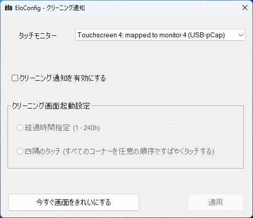 「今すぐ画面をきれいにする」ボタンを押すとクリーニング画面起動設定を行わなくても直ちにクリーニング用のポップアップウィンドウが開きます。