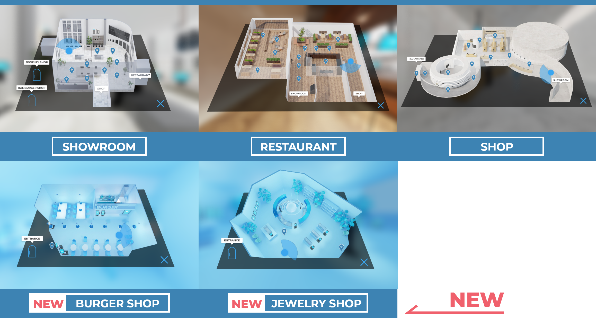 より具体的な利用シーンをイメージできるよう、ハンバーガーショップとジュエリーショップの空間を新設しました。