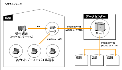 来店されるお客様の層は幅広く、ご年配者の方も多いため「わかりやすいこと」に重点を置きました。 アプリケーションソフトのボタンはできるだけ少なく、大きくすることを心がけ、また階層をあまり深くせず数回のタッチで受付が済むように作ってあります。 また基本的に店舗には電話を置かず、来店いただいて受付していただくか、ネット受付会員になったお客様はインターネットからも受付できるシステムになっています。 多い時には40〜50人待ちとなることもありますが、待ち時間の提示や順番待ち復活の機能(待ち時間中の外出から戻った時にすでに呼ばれた後だったとしても順番待ちの2番目につけてもらえる機能)を付与しておりますのでお客様に待ち時間を有効活用いただくことが可能となっています。