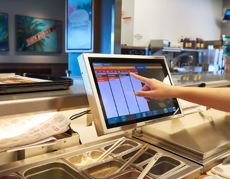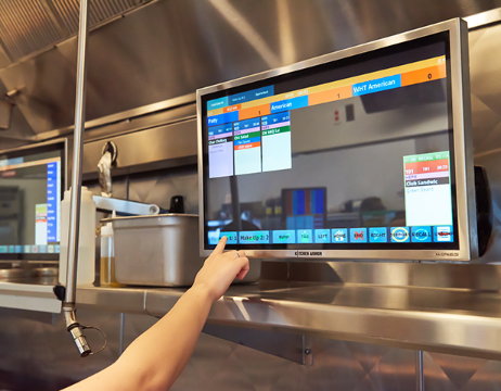 飲食店の厨房で利用されるキッチンディスプレイシステム向けに、10型から22型までの各種タッチパネル製品をご用意しています。キッチンディスプレイシステムの導入によって、注文の一元管理が容易になります。