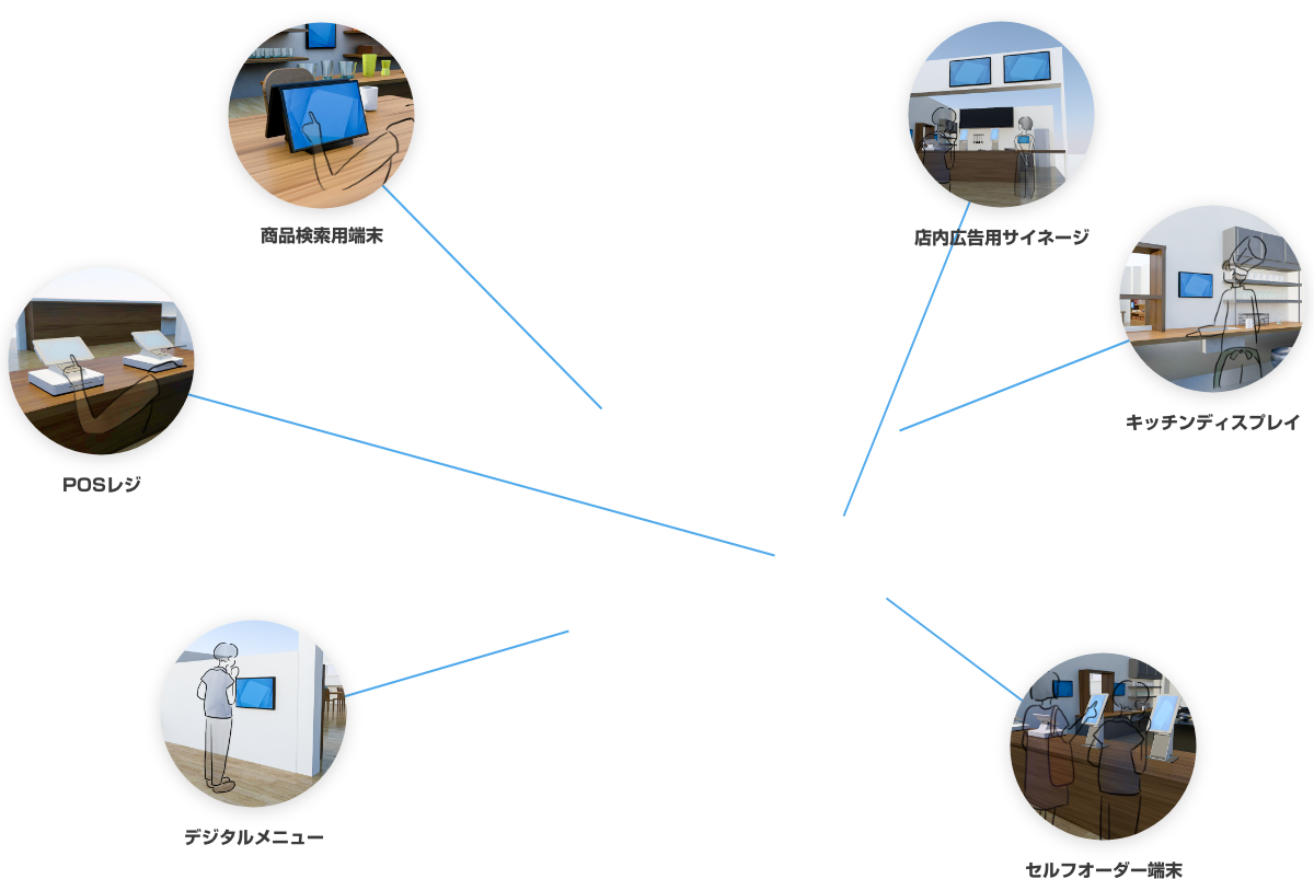 店内広告用サイネージ、体験用端末、商品検索用サイネージ、