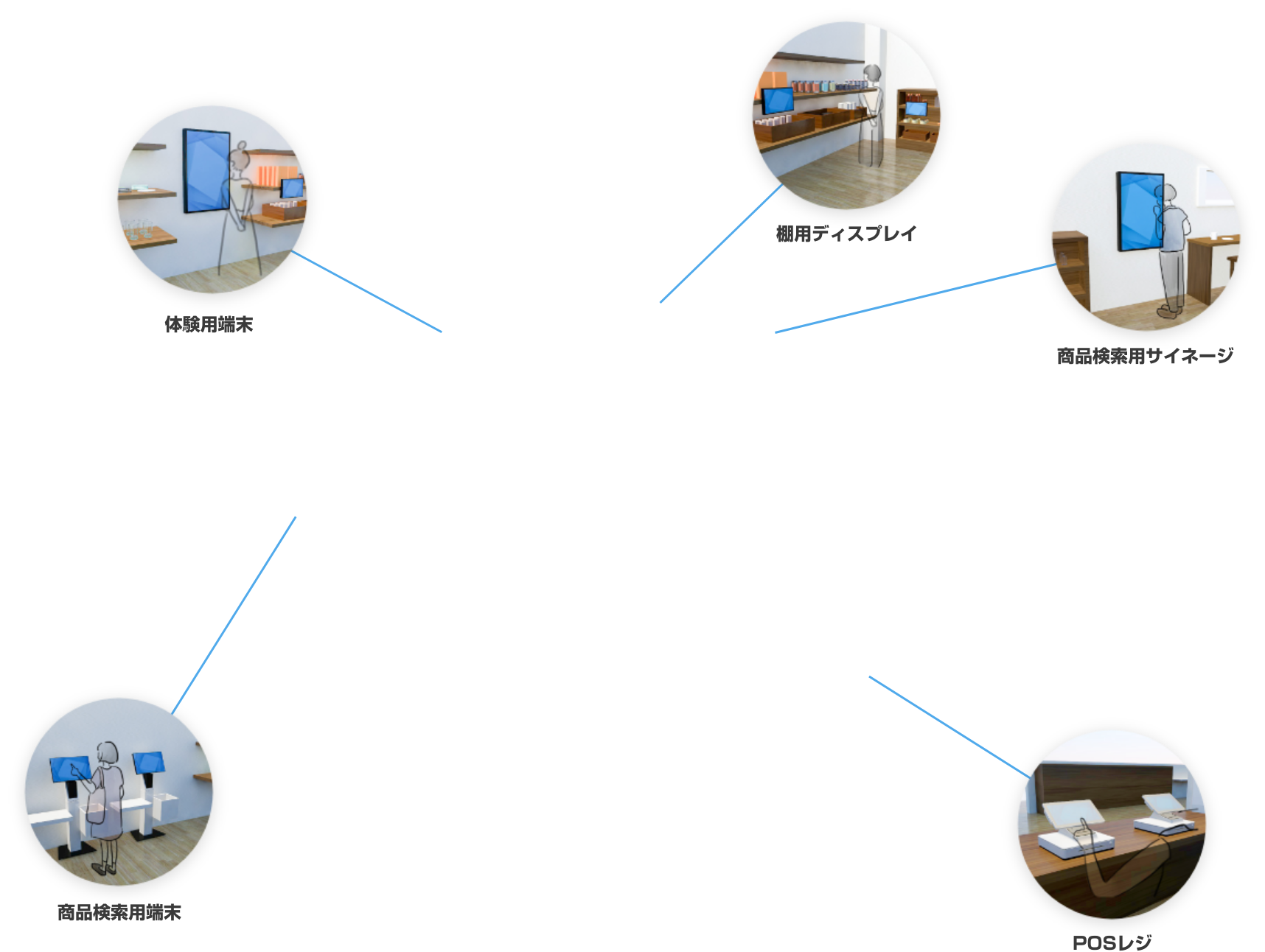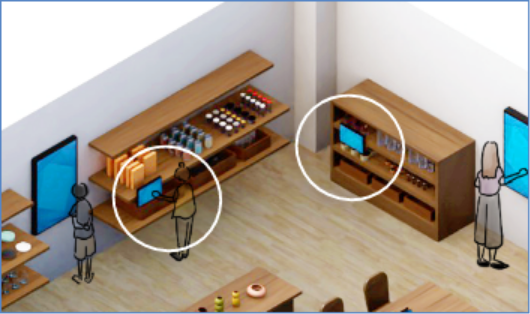店内広告用サイネージ、体験用端末、商品検索用サイネージ、