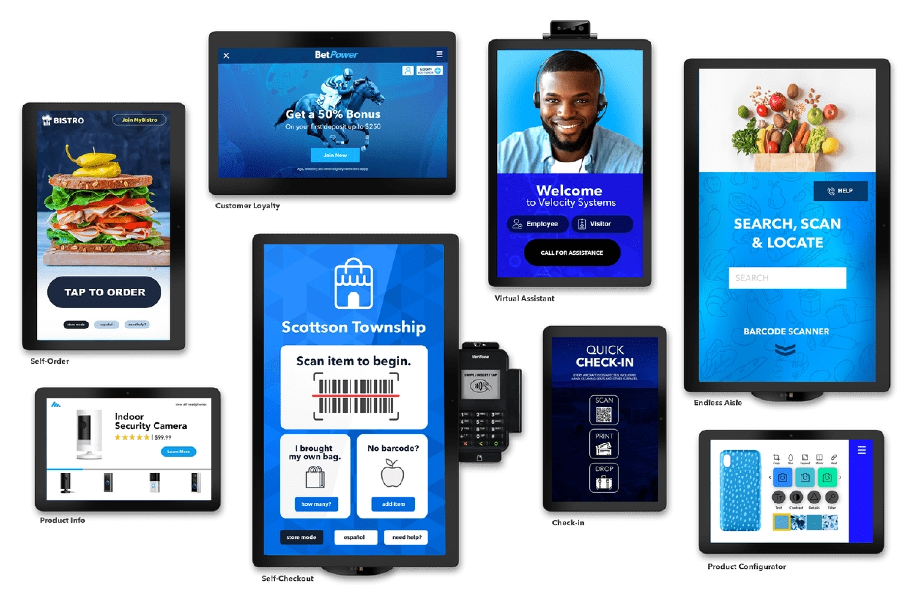 店内広告用サイネージ、体験用端末、商品検索用サイネージ、